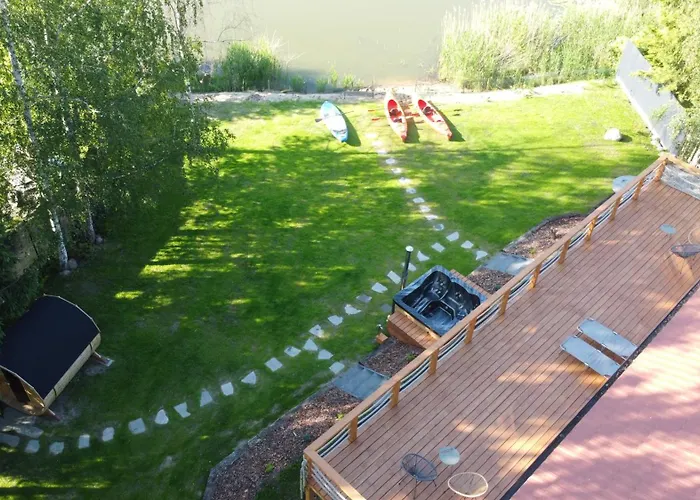 Offering a Jacuzzi and a sauna for guests to unwind, the beachfront Mazury Lake View Rusek Wielki villa is located merely 6 minutes' walk from the Ruskie Lake.